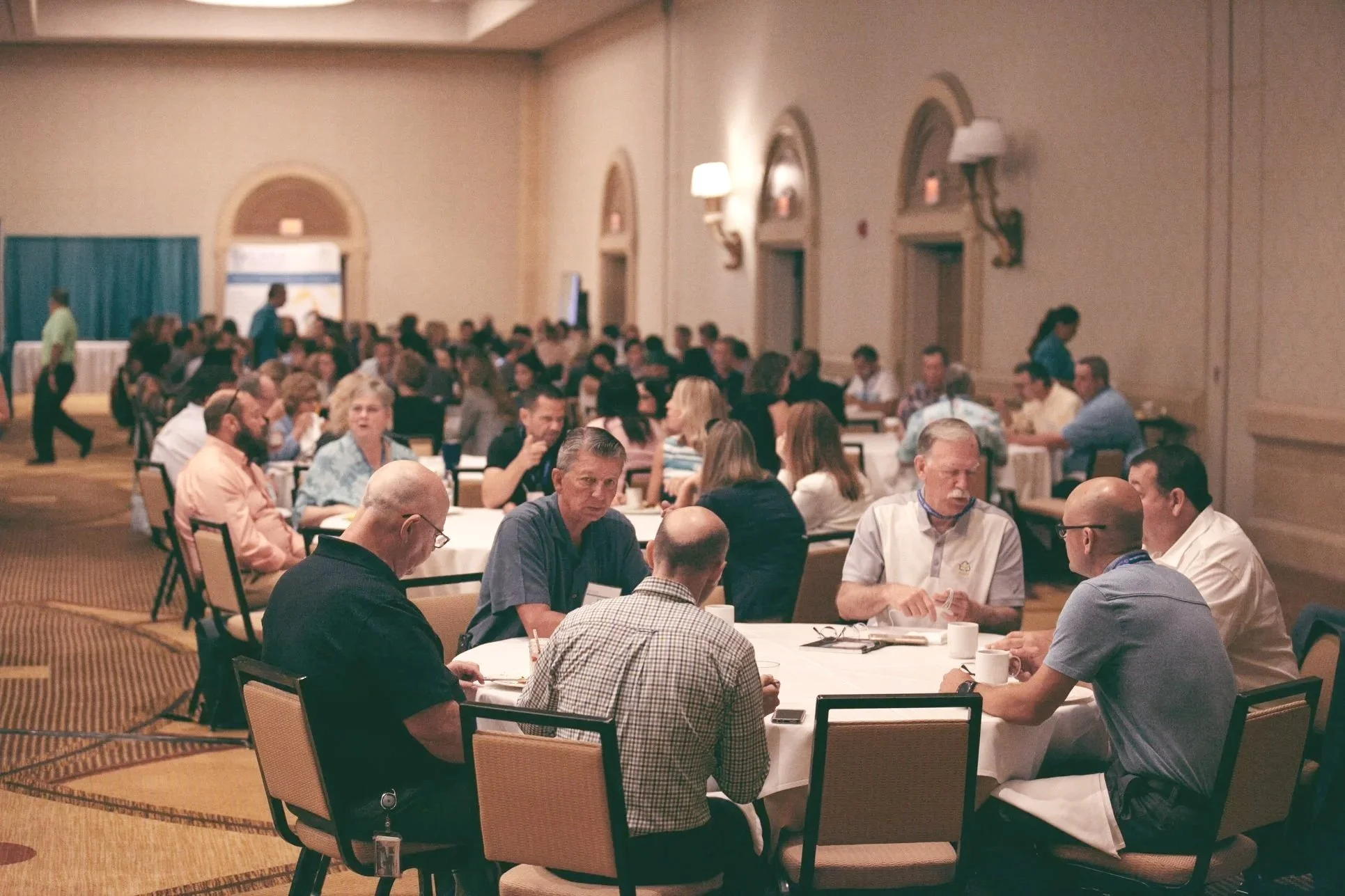 Small group conversation format with rotating tables