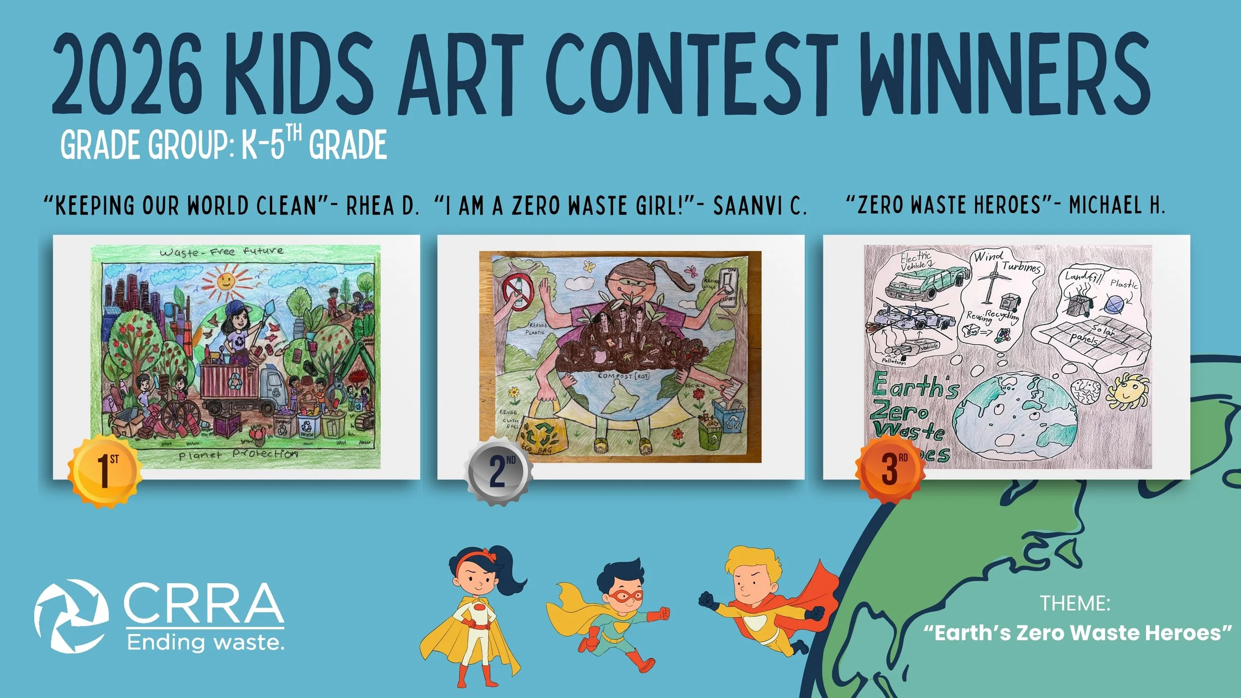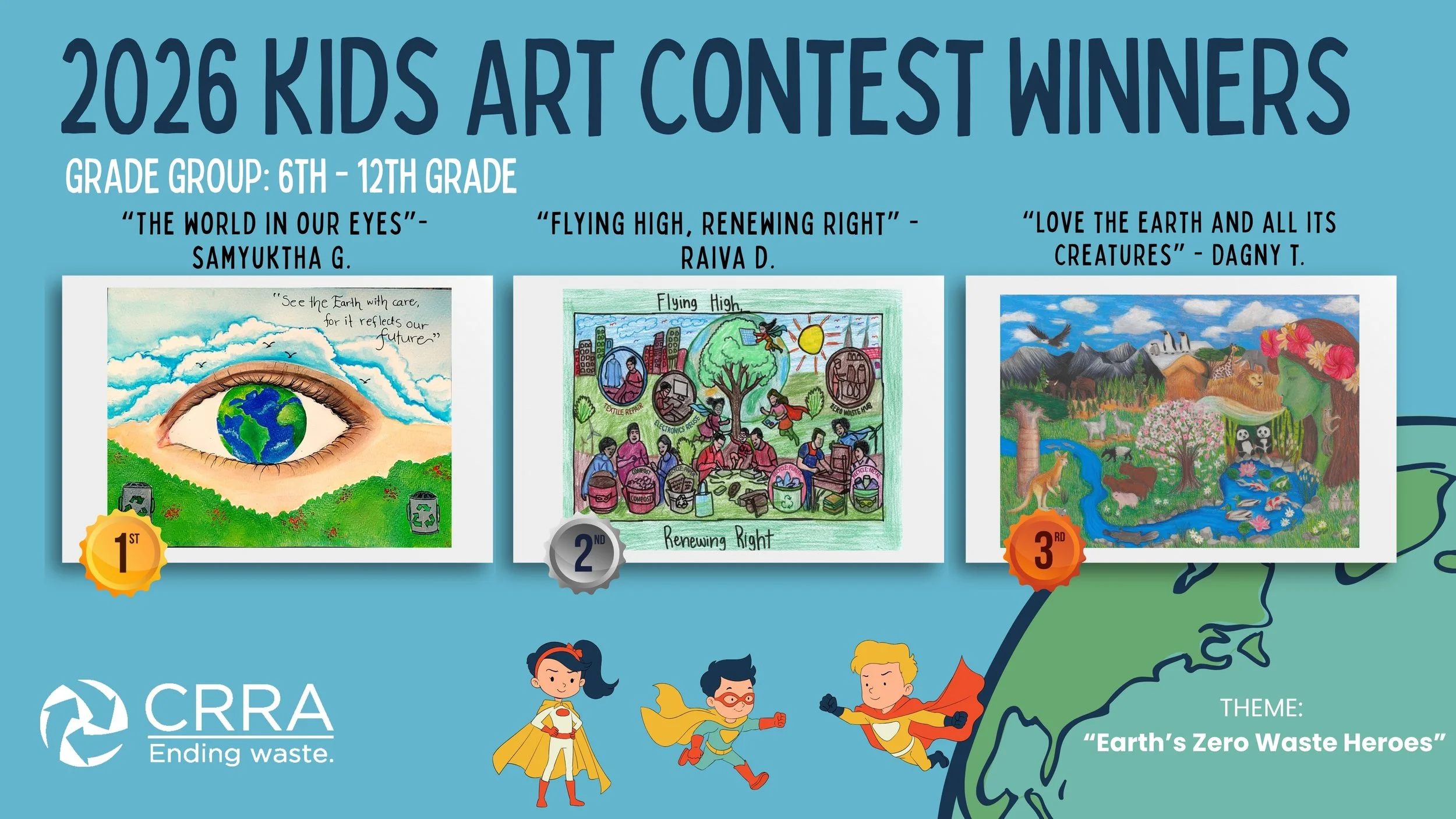 CRRA is celebrating Earth Day again this year with our second annual student art competition. Students created original work of art showcasing our 2026 theme: “Earth’s Zero Waste Heroes!” What does it look like? Who are the warriors leading the charge for the world's sustainable future?