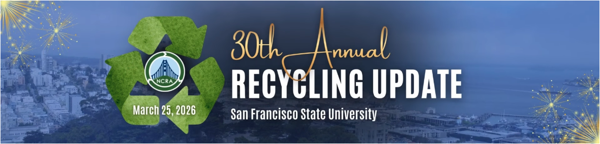San Francisco, CA – February 2026 – The Northern California Recycling Association (NCRA) is proud to host the 30th Annual Recycling Update (RU), the premier event for resource recovery professionals in Northern California. This year’s milestone conference will take place on Wednesday, March 25, 2026, at San Francisco State University’s McKenna Theater, in San Francisco, CA. In person registration includes catered lunch at the Cesar Chavez Student Center and entrance to the highly popular networking event, Green Drinks.